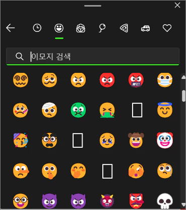 윈도우 이모지 아이콘은 윈도우 로고키+마침표 또는 세미콜론( ; )을 동시에 누르면 작동합니다. 그런데 특정한 경우에 일부 이모지 아이콘이 사각형으로 처리되면서 모양을 나타내지 못하고 공간만 차지하고 있는 경우가 있습니다.