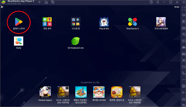 2. 앱 플레이어 바탕 화면에서 플레이 스토어를 구동합니다.