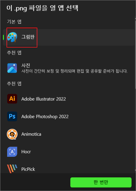 저는 윈도우 기본 이미지 편집 프로그램인 그림판을 선택했습니다.