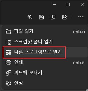 캡처 및 스케치로 캡처한 다음 오른쪽 상단의 3점을 누르고 다른 프로그램으로 열기를 클릭합니다.
