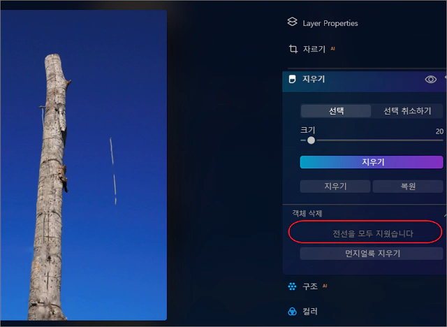 Luminar Neo에서 원클릭 전선줄, 철조망 제거