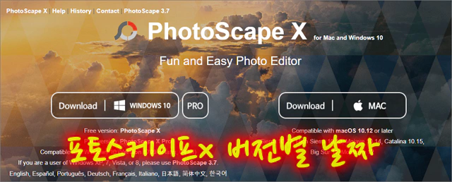 포토스케이프 X 버전별 업데이트 날짜