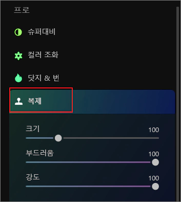 가장 아래쪽에 있는 복제 툴은 포토샵과는 다르게 마우스 커서가 움직이는 대로 미리 보기가 되므로 지우기 후의 보정 작업에 굉장히 유용한 도구입니다.