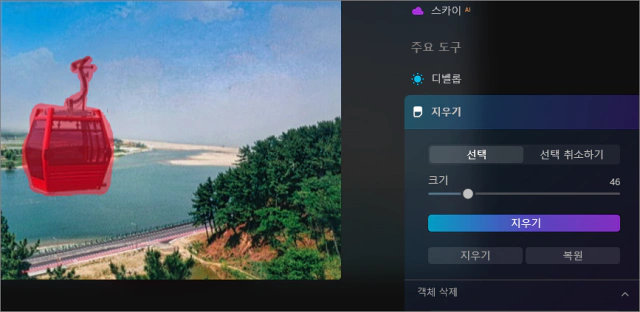Luminar Neo에서는 전선줄과 먼지를 독립하여 없앨 수 있는 오브젝트로 구분해 놓아 그 부분을 제거할 때는 매우 쉽게 제거할 수 있습니다. 전선줄에 해당하는 오브젝트로 전선줄이나 케이블을 생각해 볼 수 있는 데 전선줄의 경우에는 전봇대를 모두 제거해야 해서 상대적으로 좀 쉬운 케이블과 별도로 케이블 카 본체만 제거하면 되는 케이블 카 사진을 테스트해 보려고 합니다.