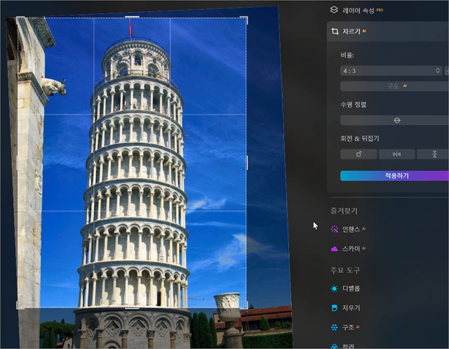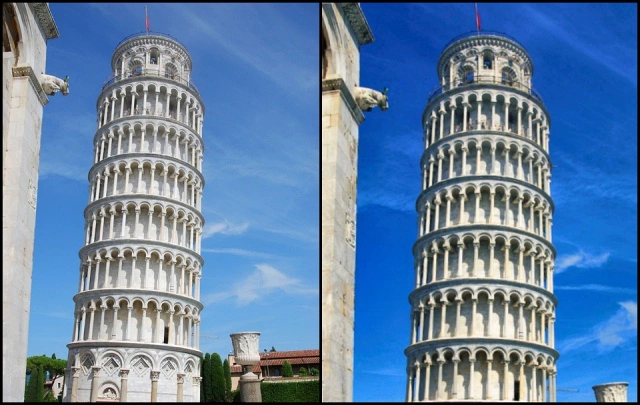 사실 피사의 사탑은 수평 정렬 기능은 사용하지 말고 자동 구도 작업까지만 진행해야 맞지만 정렬 기능을 테스트하기 위하나 작업이므로 수평 정렬을 적용시켜 봅니다.