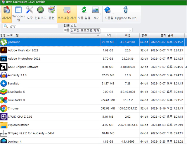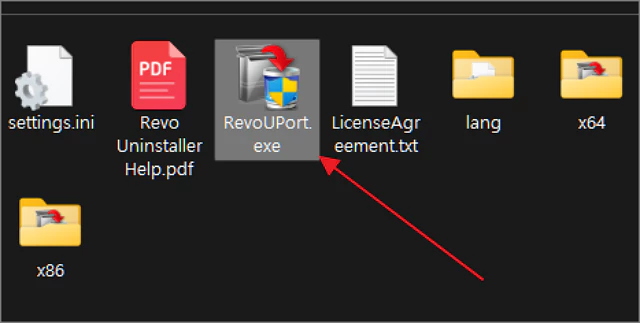따로 설치하지 않는 포터블 무료 버전이므로 압축 해제된 폴더에 있는 파일중 하나인 RevoUPort.exe 파일을 실행하면 바로 프로그램이 열립니다.