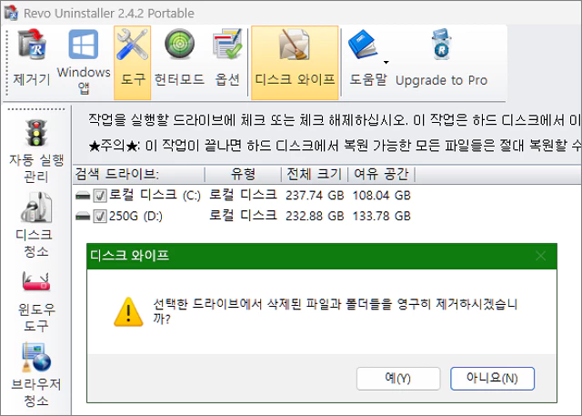 - 디스크 와이프(영구 삭제)
