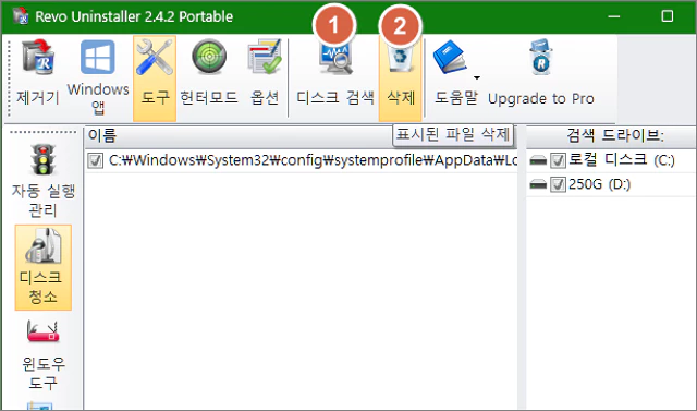 윈도우 시스템 전반에 흩어져 있는 불필요한 파일들을 삭제하는 옵션입니다.