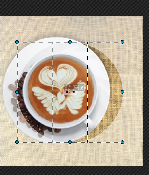 이제 이미지로 커서를 이동한 다음 드래그하면 원형이 형성되며 적당한 위치를 잡아 줄 수 있습니다. 누른 채로 이동할 수 있고, 이미지를 확대 및 축소할 수 있어 쟁반에 맞도록 적당히 조정해 줍니다.