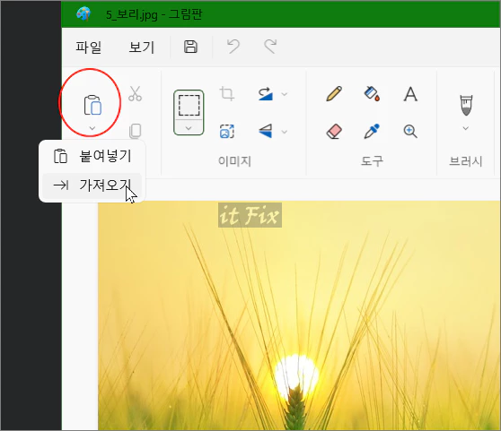 윈도우의 그림판에서도 할 수 있는 데, 그림판 상단 가장 왼쪽에 있는 붙여 넣기 버튼을 누르고 가져오기를 클릭합니다.