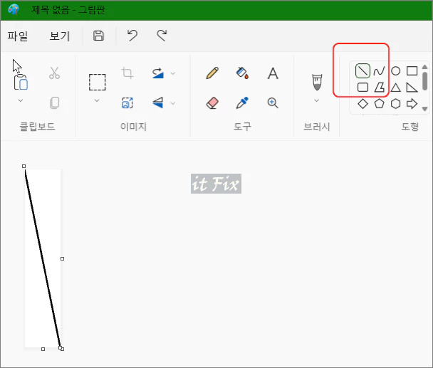 도형에서 직선을 선택한 다음 대각선으로 그어 줍니다.
