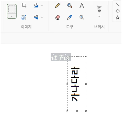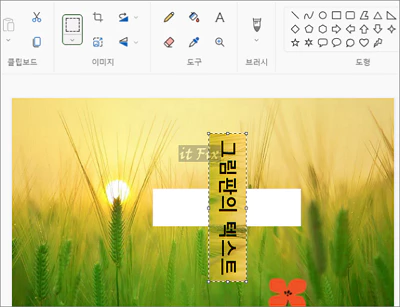 일반 기본 그림판에서는 텍스트 입력후 회전이 가능하지만 단색 배경에서만 이미지 손상이 없으며, 형태가 존재하는 이미지일 경우 배경 이미지까지 함께 회전하게 되어 적절하지 않습니다.