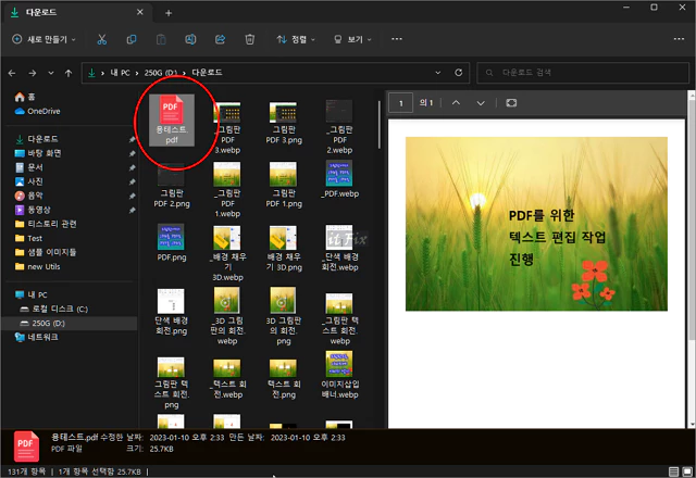 이제 윈도우 파일 탐색기를 열고 지정해 주었던 폴더를 열어 보면 PDF 문서로 잘 저장되어 있는 것을 확인할 수 있습니다.