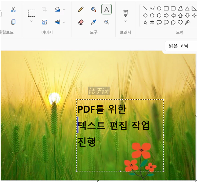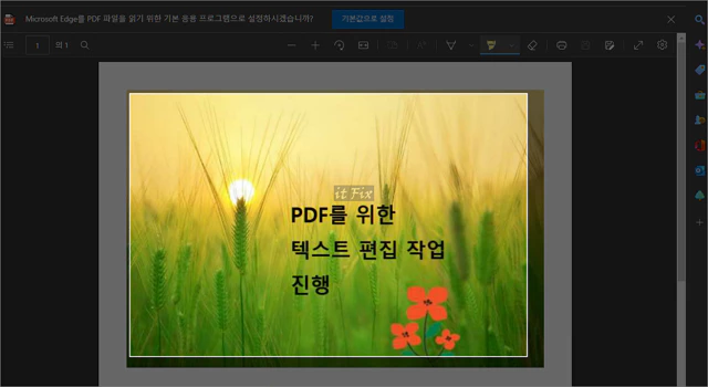 PDF로 저장된 이후에는 편집이 불가능하므로 이미지인 상태에서 텍스트 삽입 등의 필요한 편집을 가합니다.