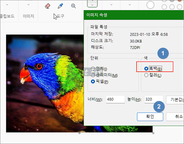 그림판으로 컬러 이미지를 흑백 이미지로 저장하기