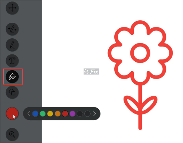 5. 색칠하기 단계로 좌측의 메뉴 중 Fill 툴을 선택한 다음 그 아래에서 색상을 선택하고 원하는 부분에 부어줍니다.