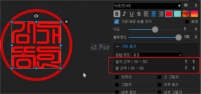 이전 포스팅에서 오리지널 도장 폰트인 HJ한전서B를 이용해 가장 흔한 형태의 투명 도장 이미지를 제작해 보았습니다.