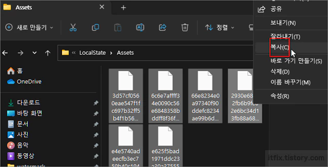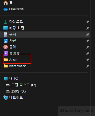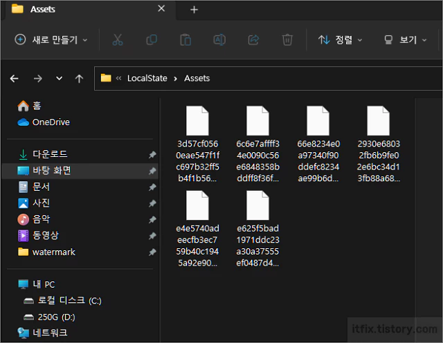 이미지의 Assets 폴더가 바로 바탕화면 이미지들이 임시 보관되는 폴더입니다.