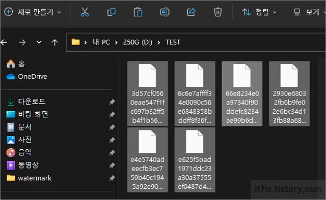 보통 대여섯개의 굉장히 긴 이름으로 된 미리 보기가 되지 않는 파일들이 있습니다.