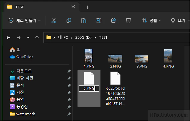파일들을 모두 복사해 왔으면 파일의 이름 부분을 한번 클릭한 다음 1.PNG, 2.PNG, 3.PNG 등처럼 이름을 변경해 줍니다. 변경하는 순간 이미지 파일로 변경하게 되며 탐색기에서도 미리 보기 창에 이미지의 내용이 보입니다.