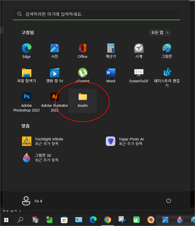 시작화면에 고정을 선택했을 경우에는 윈도우 시작 버튼을 눌렀을 때 항상 아래와 같은 이미지로 있게 됩니다.