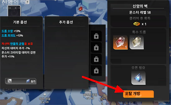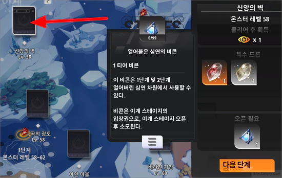 - 얼어붙은 심연 첫번째 스테이지인 신앙의 벽을 클릭합니다.
