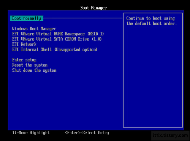 위와 같이 하면 아래처럼 vmware에서 바이오스에 진입할 수 있습니다.