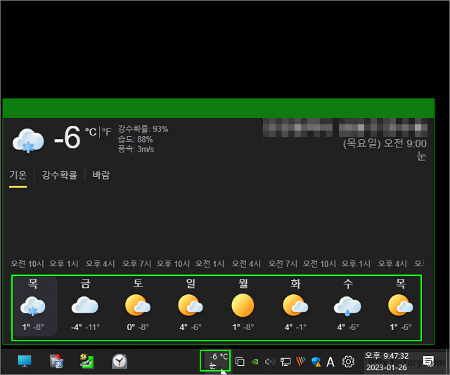 윈도우 11 작업 표시줄에서 날씨, 일기예보 보는 방법