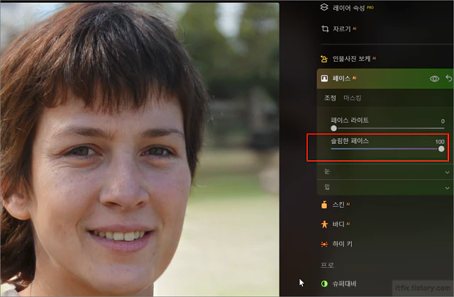 2. 루미나 AI에서의 페이스 슬림화