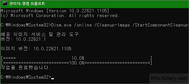 단순한 이 작업만으로 WinSxS 폴더의 크기가 9.82GB에서 7.06GB로 감소해 약 2.76GB가 제거되었습니다.