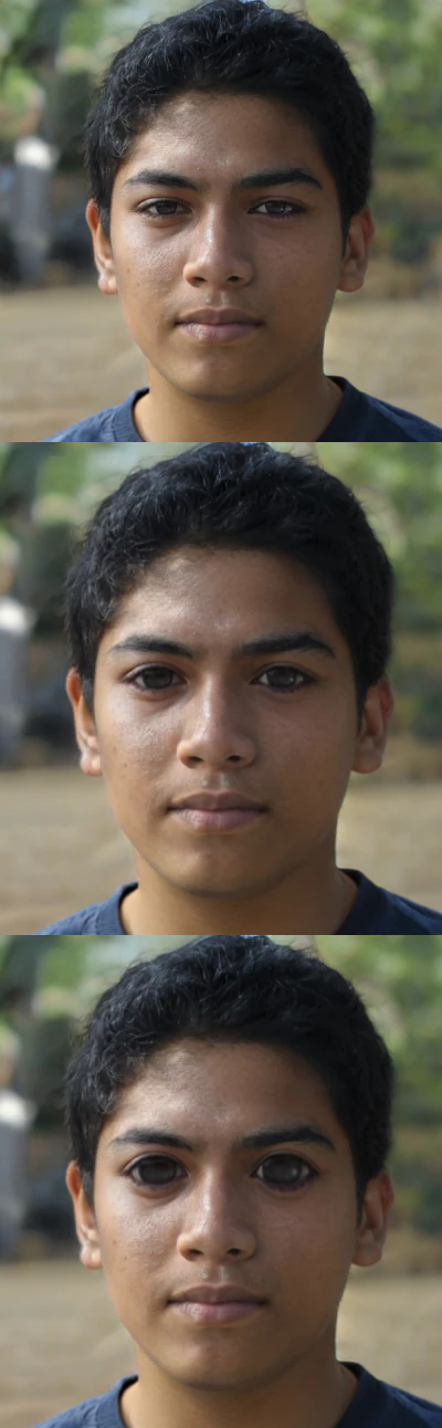 아래의 이미지는 전과 후의 눈 크기입니다. 마지막 이미지는 장난삼아 비정상적으로 크게 해 보았습니다.