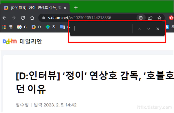 특정 페이지에서 Ctrl+F 키를 누르면 주소 표시줄 상단에 조그만 팝업 창이 열립니다.