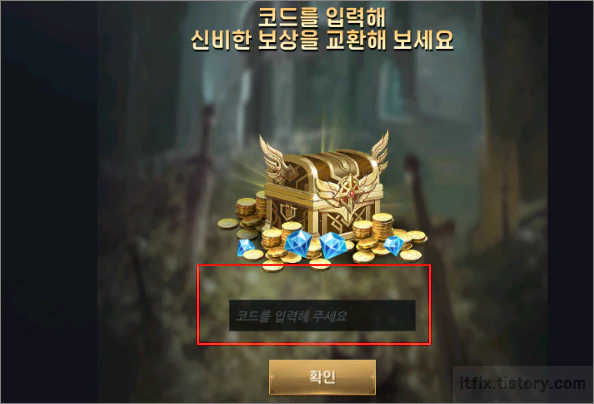 3. 코드를 입력해 주세요라고 적여있는 입력 상자에 코드 번호를 입력하고 확인을 눌러 줍니다.