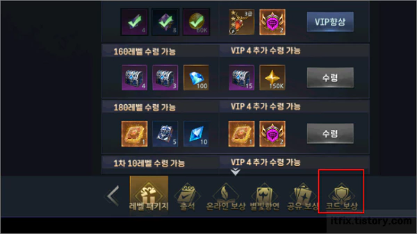 2. 아래쪽에서 코드 보상 아이콘을 누릅니다.