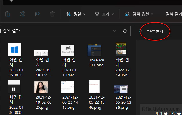 만일, 파일명의 중간에 02가 존재하는 PNG 파일만 찾고 싶다면 *02*.png 처럼 입력하시면 됩니다.