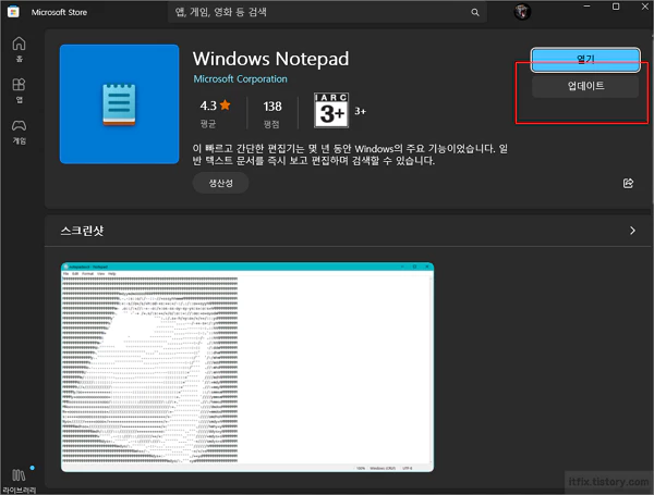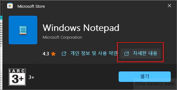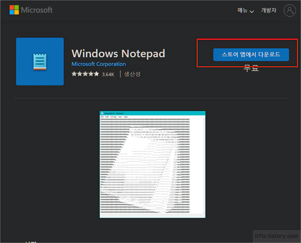 1. 아래의 MS 스토어의 메모장 디테일 페이지로 이동합니다.