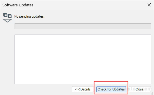 다음으로 열리는 Software Updates 팝업 창에서 아래쪽의 Check for Updates 버튼을 클릭해 줍니다. 이렇게 하면 업데이트할 내역이 있는 경우 vmware에서 자동으로 업데이트를 진행합니다.