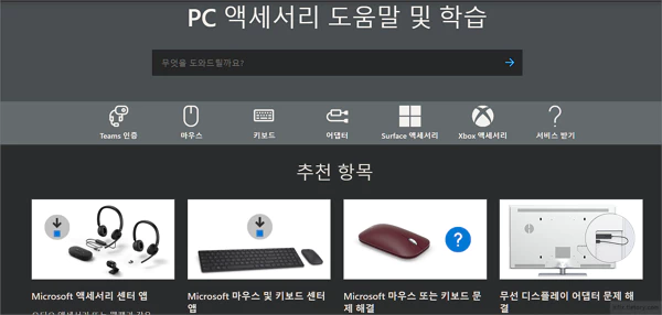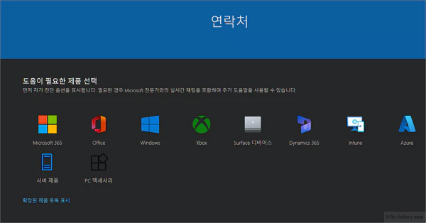 이외에도 마이크로소프트의 개별 제품군별 AS 페이지로 이동하여 자신이 문의하고자 하는 구입한 제품의 카테고리를 눌러 실시간 채팅 등의 도움을 받는 방법도 있습니다.