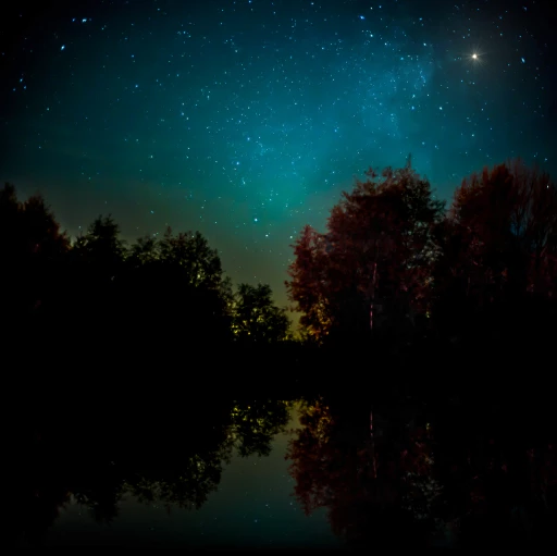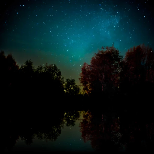 '아래의 샘플 이미지를 이용해 호수에 반사된 이미지를 만들고 밤하늘에 빛나는 별을 추가해 보시오.'