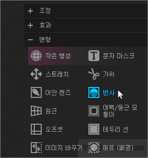 포토스케이프에서 이미지를 불러온 다음 우측의 메뉴중 변형 > 반사를 클릭합니다.