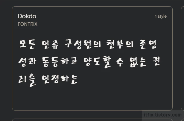 예를 들어 목록중 독도(Dokdo) 폰트를 설치한다고 가정해 보겠습니다.