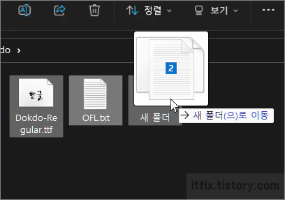 아래의 이미지는 동일 드라이브 내의 다른 폴더로 파일들을 그냥 드래그한 경우에 팝업 도움말이 이동이라고 표시되는 이미지입니다. 만일, Ctrl 키를 누르고 드래그했다면 같은 드라이브 내에서라면 복사로 표시됩니다.