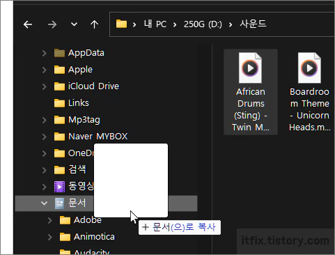 파일 탐색기에서 마우스를 이용한 파일 복사 또는 이동 요약 정리