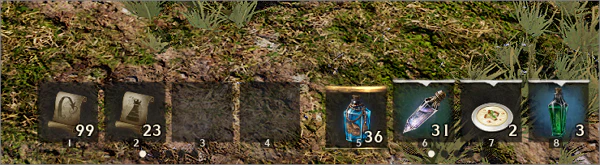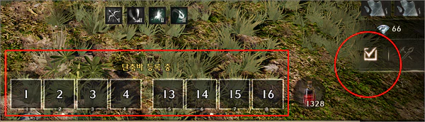 아이템을 클릭한 다음 등록하고자 하는 숫자 네모칸을 클릭하면 해당 아이템이나 스킬이 들어가게 됩니다.