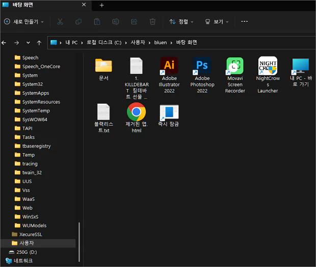 윈도우 11 바탕 화면 모습이 경로 폴더의 모습과 다른 이유