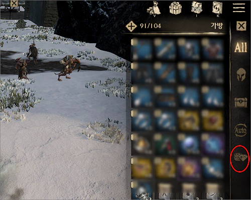 1. 가방 아이콘을 눌러 가방을 엽니다.