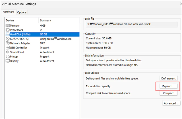 윈도우 11, Vmware Workstation의 저장 공간을 늘리는 방법
