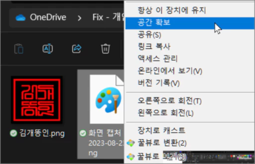 다만, 이 방법은 로컬 PC의 저장 공간을 사용하며 저장소 센스의 공간 관리 기능에 의해 자동 삭제될 수도 있습니다.