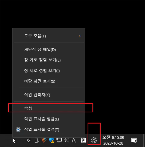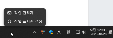 설치 이전과 이후를 쉽게 구분할 수 있는 방법은 작업 표시줄에서 마우스 우클릭을 해보면 됩니다.