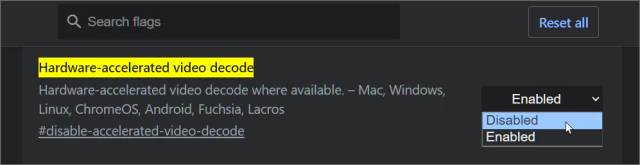 chrome://flags/#disable-accelerated-video-decode